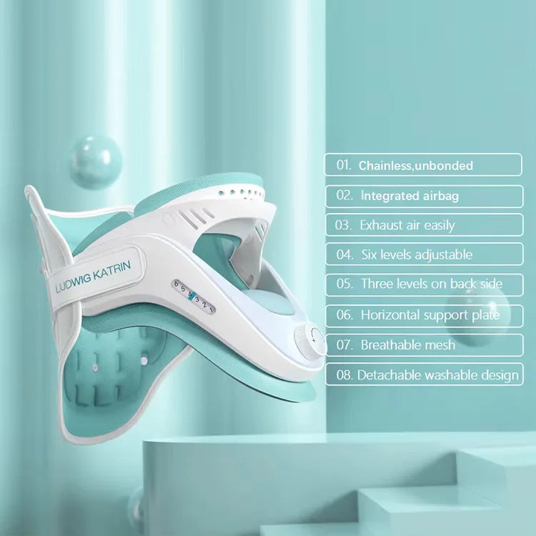 Answer 1: The device gently stretches the cervical spine using adjustable airbags, which promote proper alignment and alleviate tension in the neck and shoulders. This targeted traction helps address the root causes of discomfort, rather than just masking the pain.