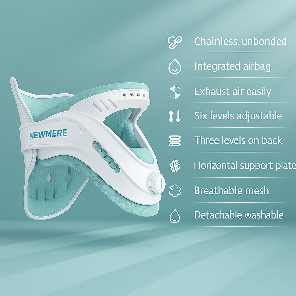 Answer 1: The device gently stretches the cervical spine using adjustable airbags, which promote proper alignment and alleviate tension in the neck and shoulders. This targeted traction helps address the root causes of discomfort, rather than just masking the pain.